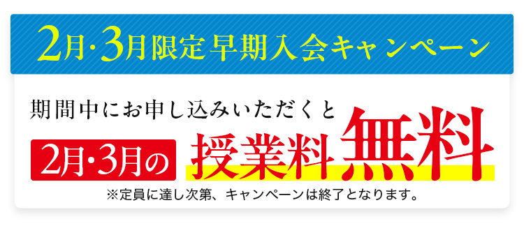 | 曜日・時間 | 土曜日 13:00~14:40 ※新年中コースは、受験終了後(秋以降)に開講予定。 |